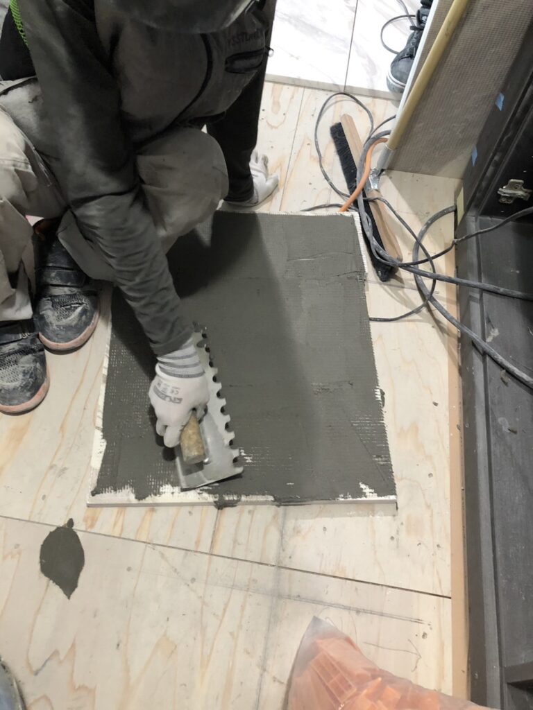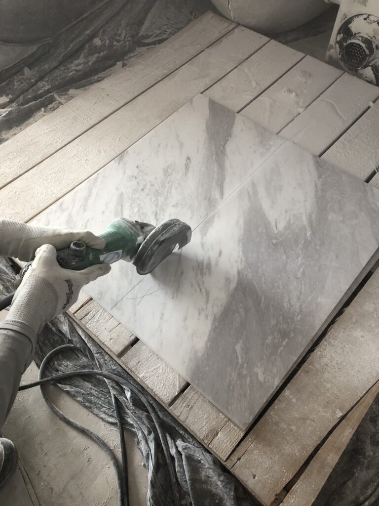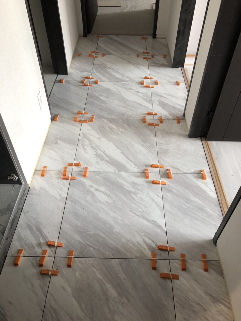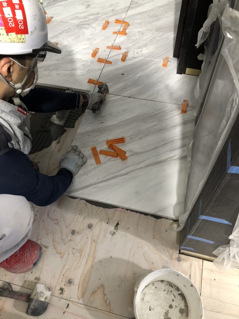 都内某所の高層マンションの各部屋内の居住スペースの大理石工事です。